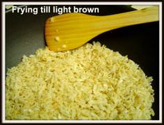 2. Fry the parched rice in 1 tbsp oil and keep it aside. The