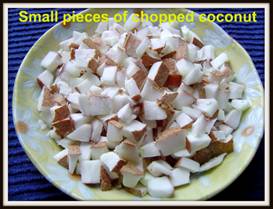 the seasoning ingredients and mix. Now add the grated coconut and the fried