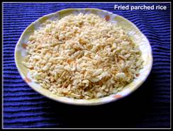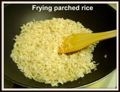 2. Fry the parched rice in 1 tbsp oil and keep it aside. The